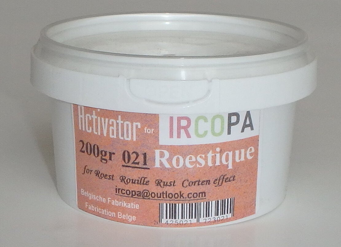 021 - Roestique Activateur pour la pâte de fer. Il vous donnera l'effet rouille, ou effet acier corten, ou acier oxydé, ou corten rust.